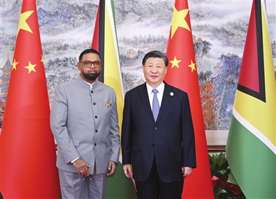 习近平指出,中国和圭亚那虽然相距遥远,但友谊源远流长。圭亚那是加勒比地区最早承认一个中国原则并同新中国建交的国家。去年,中圭隆重庆祝了建交50周年。近年来,圭亚那经济快速发展,国家建设日新月异,中国正在以高质量发展全面推进中国式现代化。中圭两国要做彼此信赖、相互倚重的好朋友,共享机遇、共迎挑战、共谋合作、共促发展,推动构建更加紧密的中圭命运共同体。